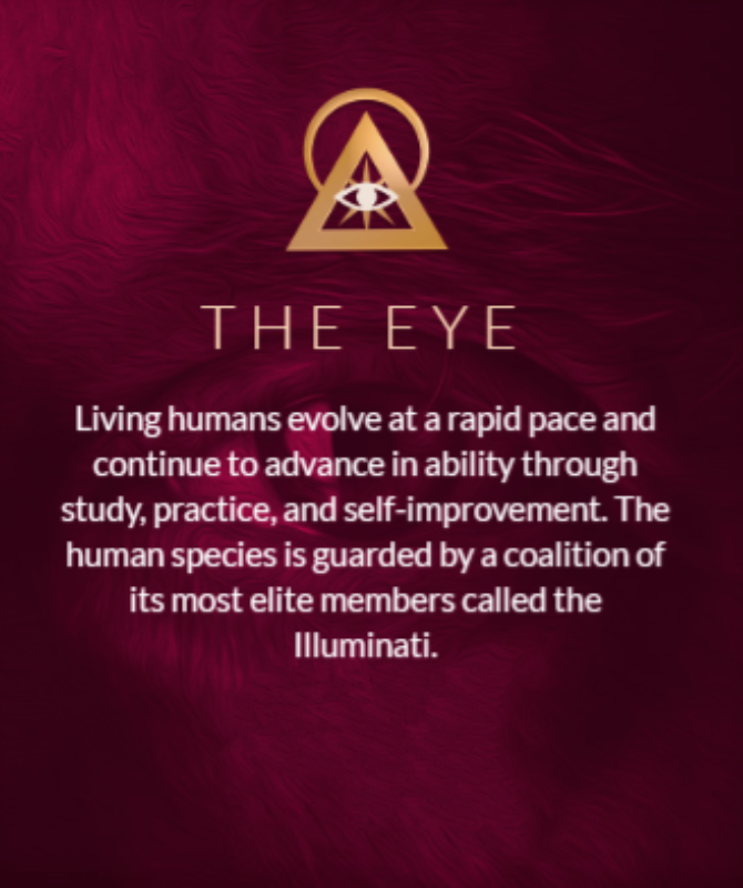 Since our origination, Illuminati members have dedicated themselves to the advancement of the human species by taking oaths of commitment. These pledges are a core tradition of the Illuminati, formed as written contracts between a single person and all members of humanity. The first pledge of the Illuminati is called the Eternal Oath.